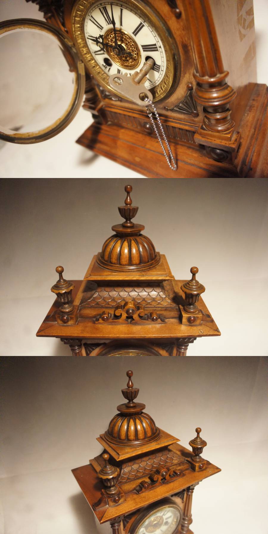 時計は1900年代初期のもので、汚れ等ありますが、大変雰囲気の良いドーム装飾置き時計です。